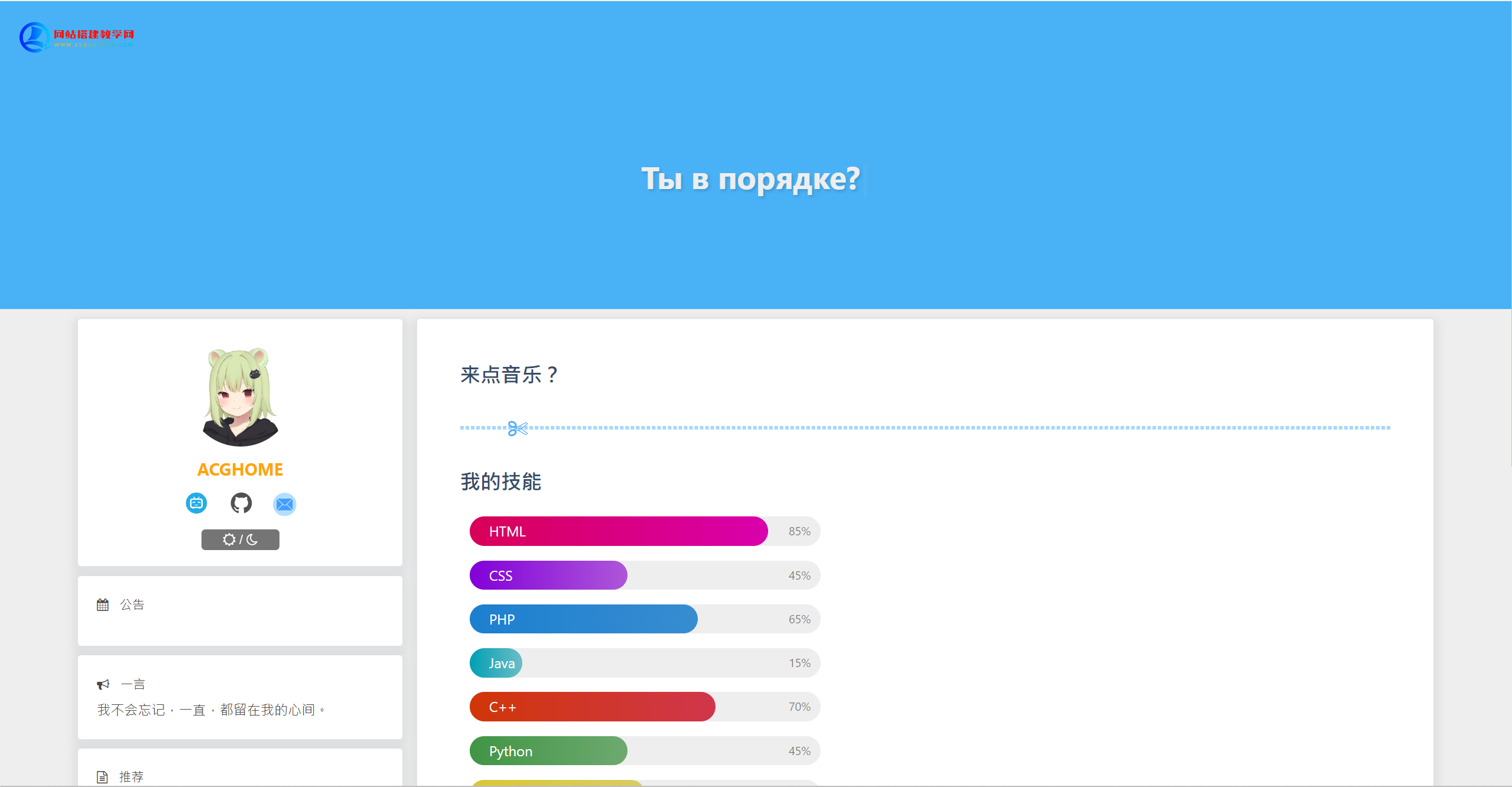 网站搭建学习网 建站/导航/下载/推广 ACGHome1.0.4个人主页 https://www.xuezuoweb.com/1039.html