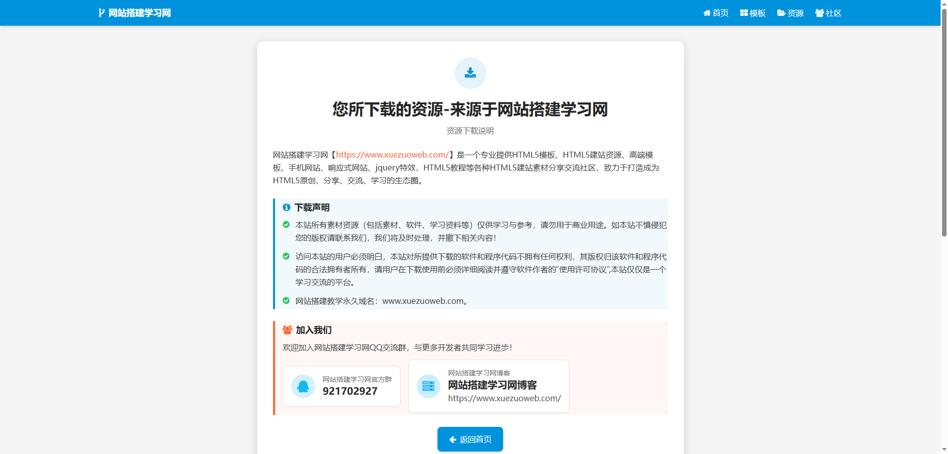 网站搭建学习网 建站/导航/下载/推广 html的免责声明单页源码挺好看的,简约风格 然后功能也挺全的 https://www.xuezuoweb.com/18568.html
