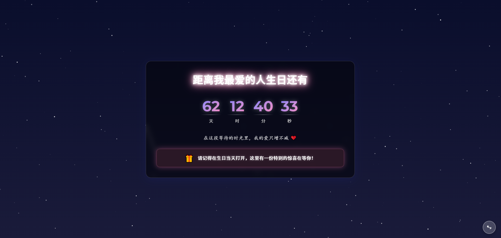 没到生日的时候访问会显示倒计时,生日的时候访问会显示祝福语