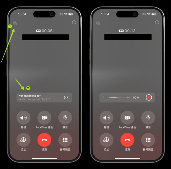 升级到 iOS18.1 后,打电话时左上角会有一个录音按钮,点击就可以开启录音。